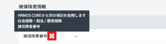 表示されていない項目については「?」にカーソルを合わせると「HRMOS CORE」からの引用等が分かる仕組みになっています。情報に不足・修正がある場合は、「?」を確認の上、「HRMOS CORE」の情報をメンテナンスしてください。