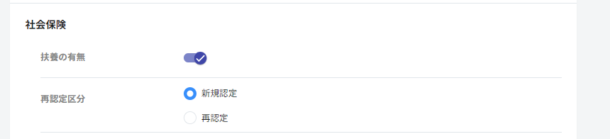 - 次の家族>社会保険>扶養の有無=有で設定している人についてはその被扶養者を該当にする届出、無で設定している人はその被扶養者を非該当にする届出ができます(変更も扶養の有無=有の人の届出となります)。