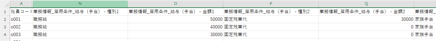 - 登録にあたり、HRMOS COREから手当・単価をエクスポートしたときに、閲覧や額面変更を容易にするには手当-種別1、2・・・同じ種別での手当名・単価名は統一し、支給が無い箇所は0円で設定いただくと便利です。