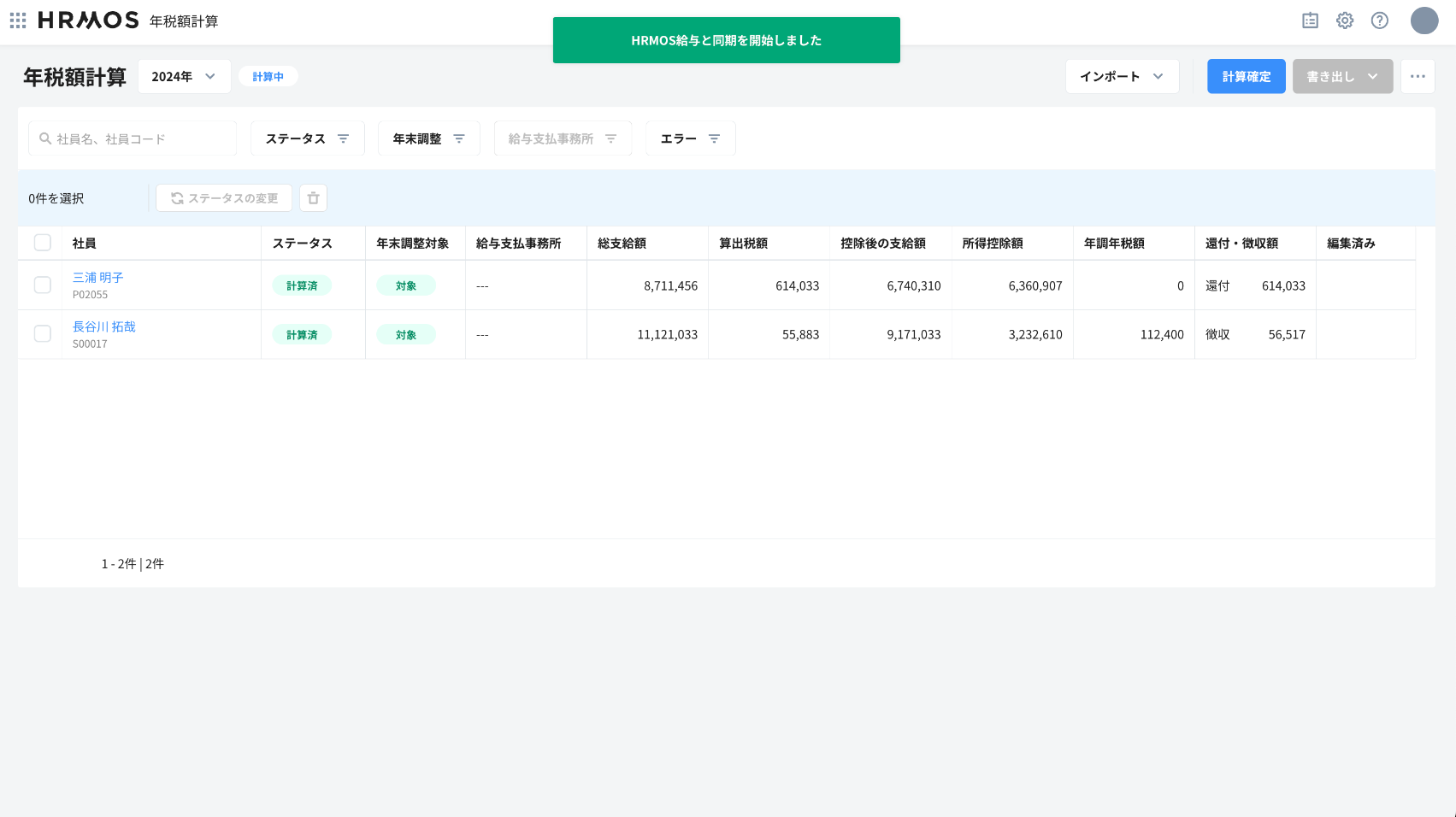 「HRMOS給与」との同期が開始されます