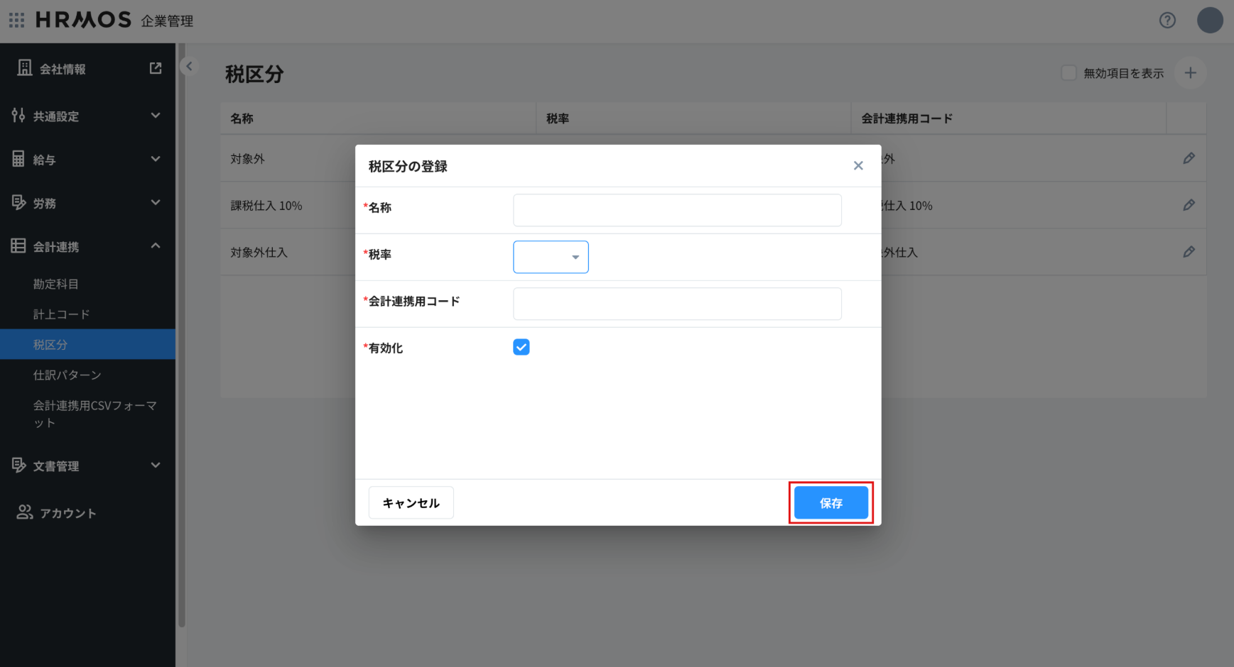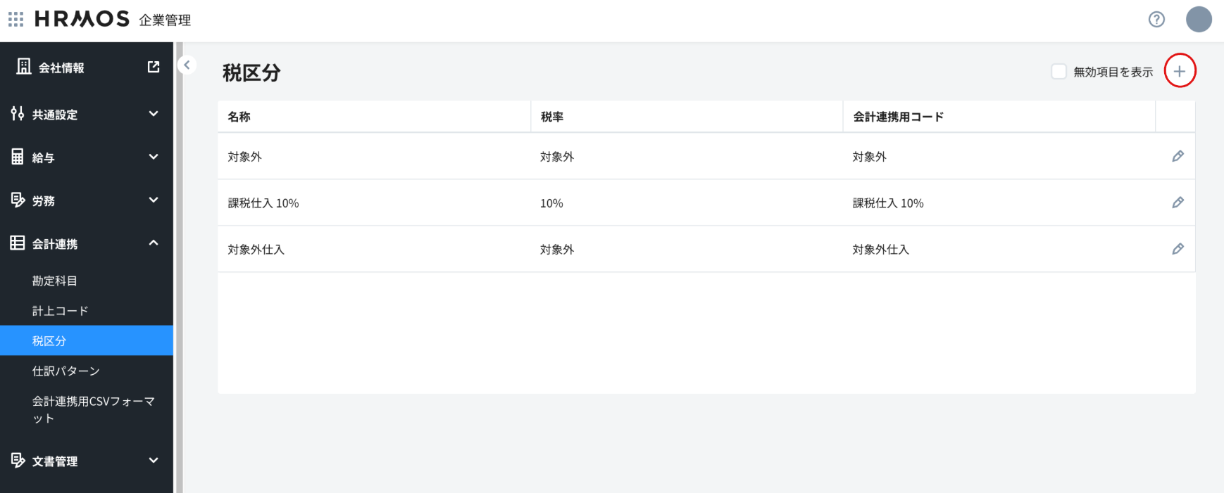 ※「会計連携用コード」には仕訳集計結果出力時に出力するコード(会計システム上の税区分コード)を