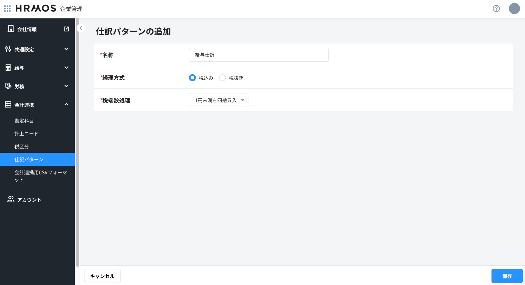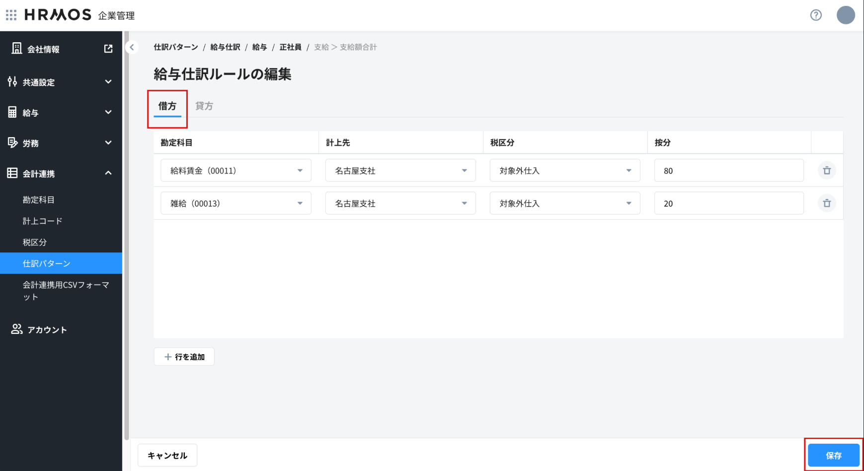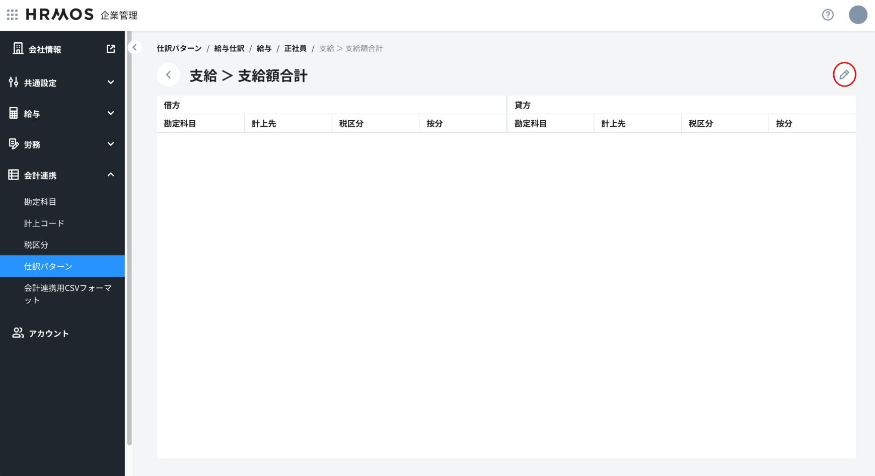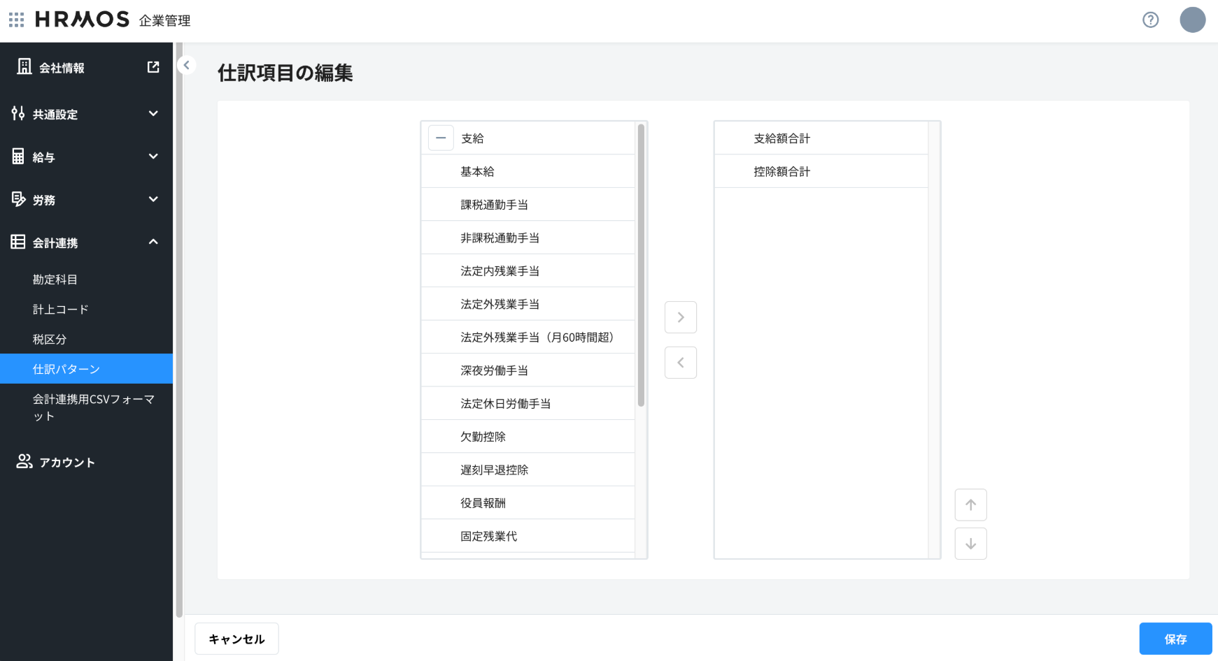 「HRMOS企業管理」>会計連携>仕訳パターンより