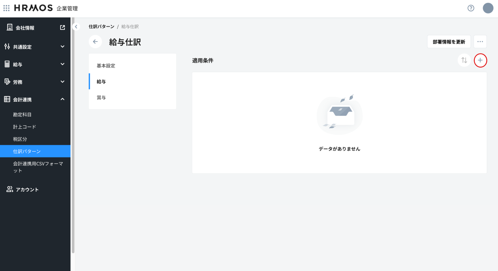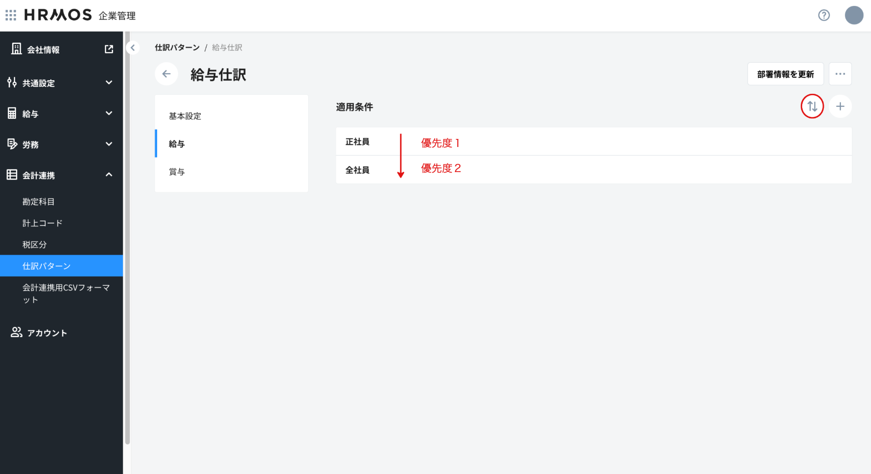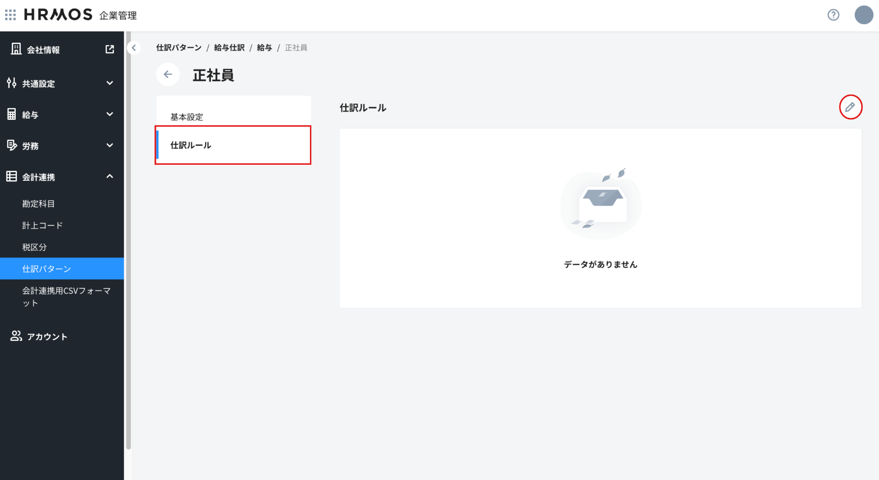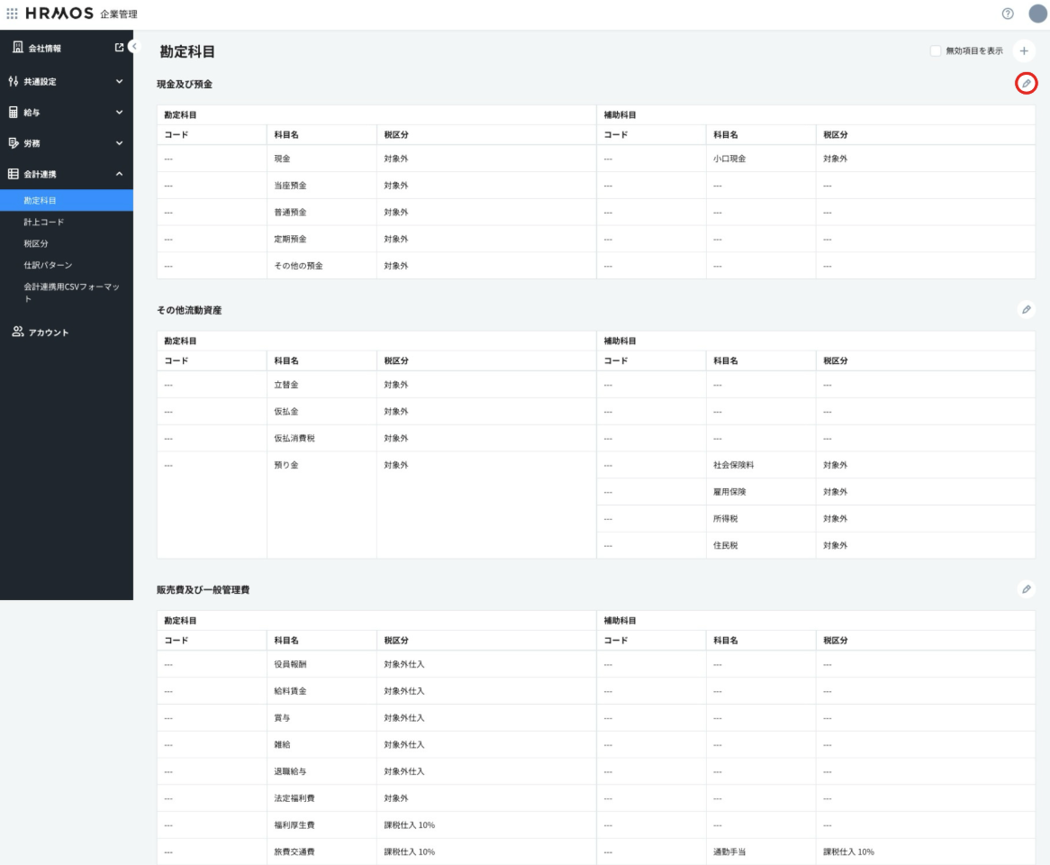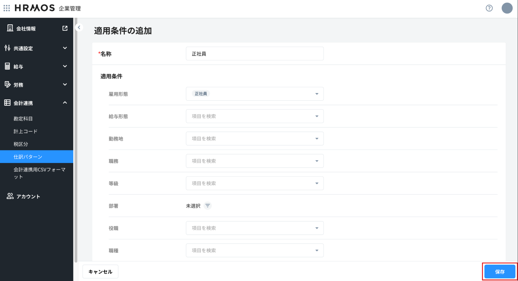 「HRMOS企業管理」>会計連携>仕訳パターンより