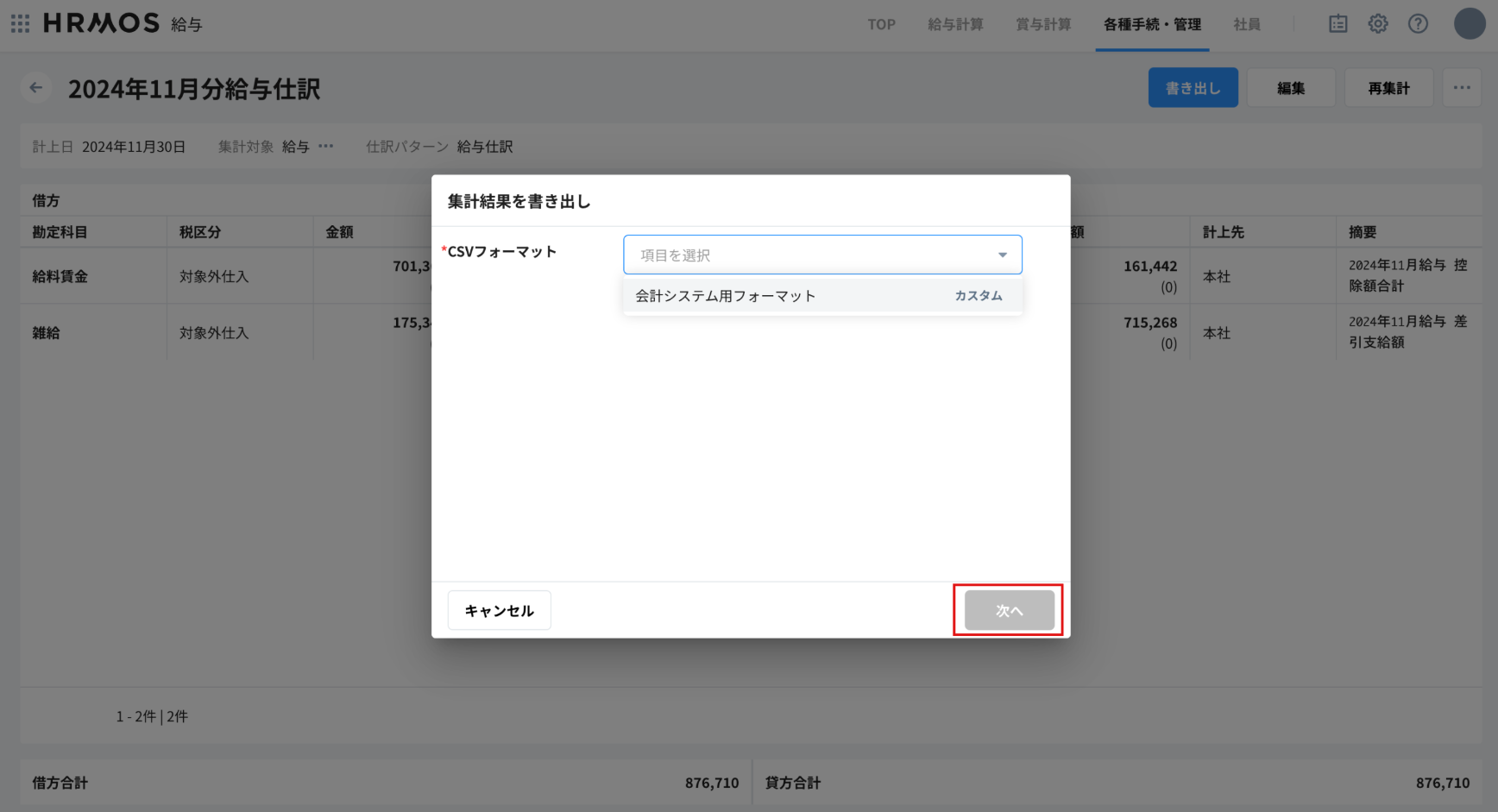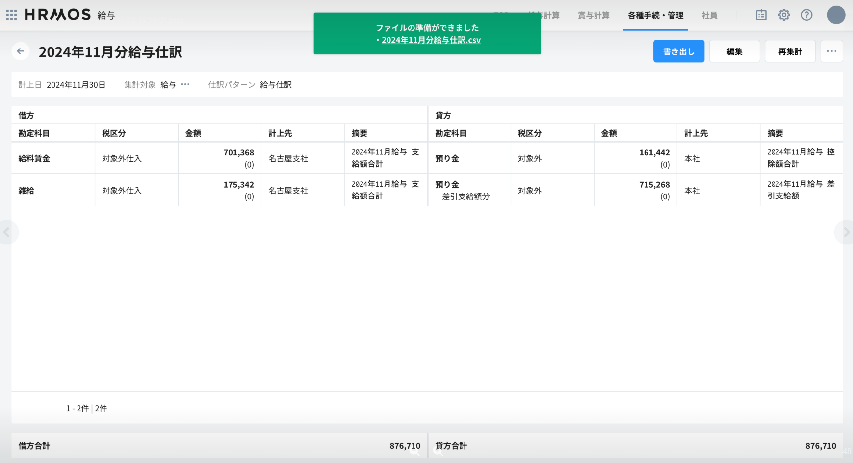 - HRMOS給与で会計システム連携用の仕訳およびCSV出力ができるようになりました