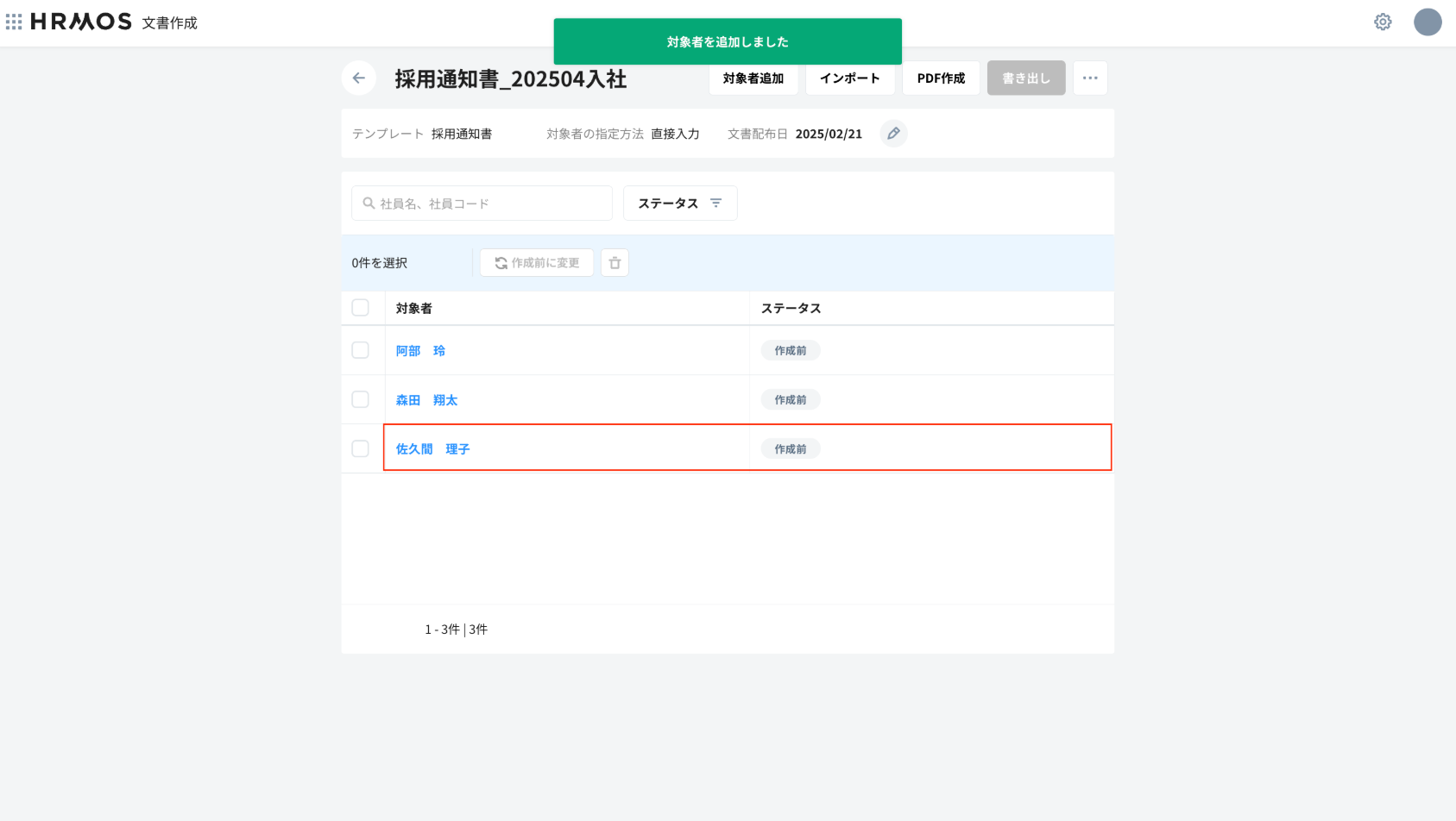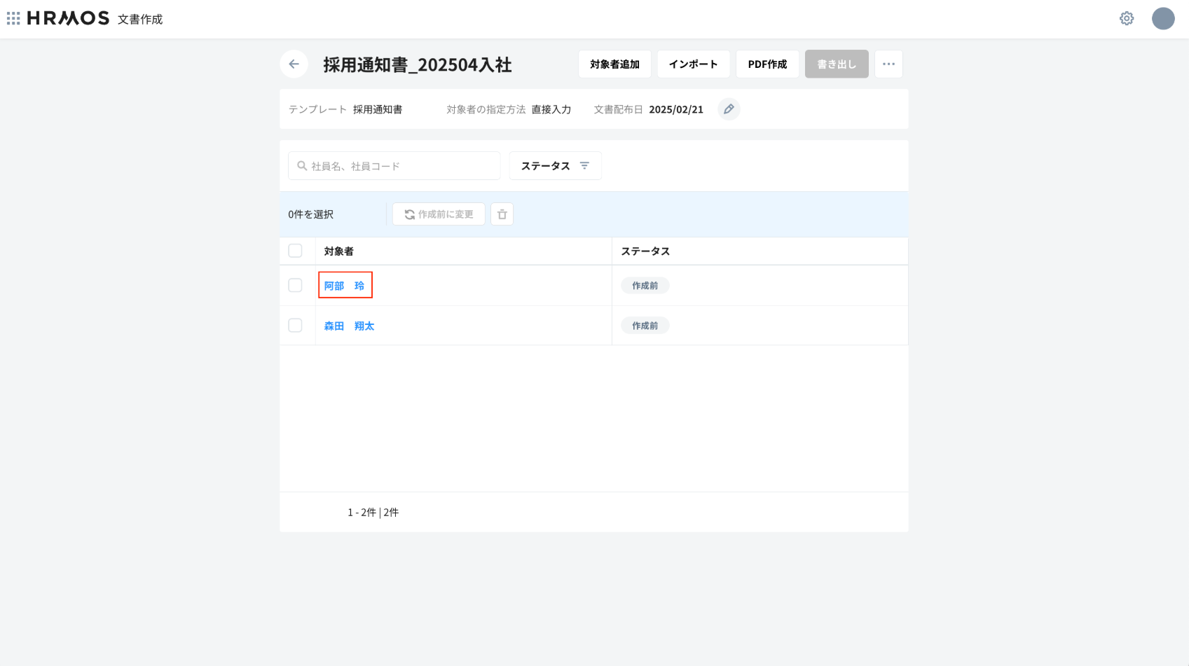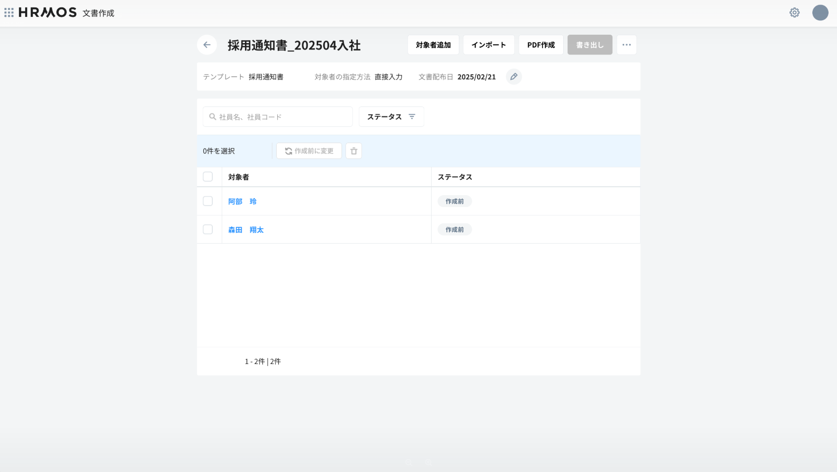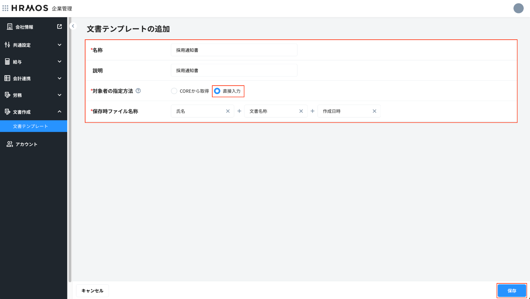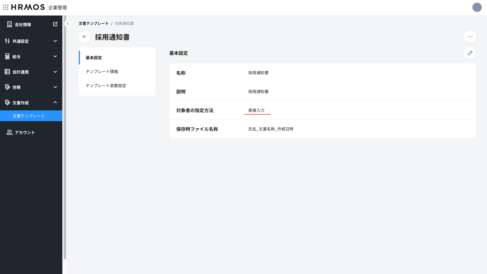 - これにより内定通知書等、入社前で「HRMOS CORE」に登録前の社員向け等の文書作成が可能になります