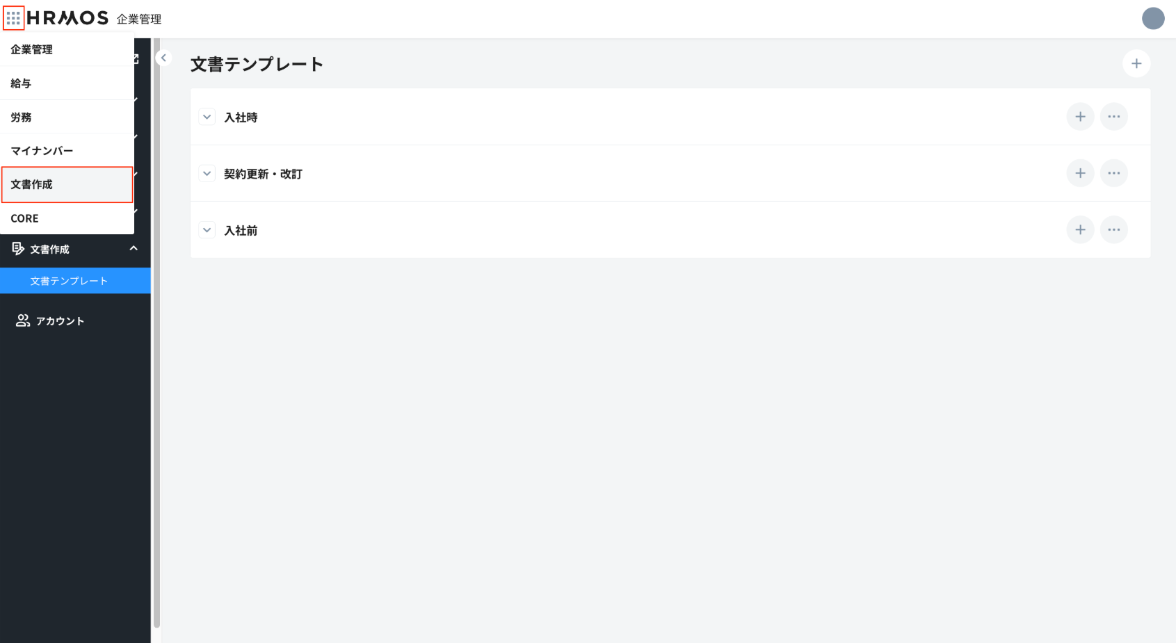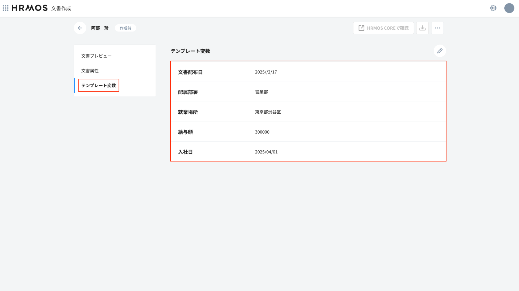 ※HRMOS COREの情報を使った文書作成を行いたい場合は、