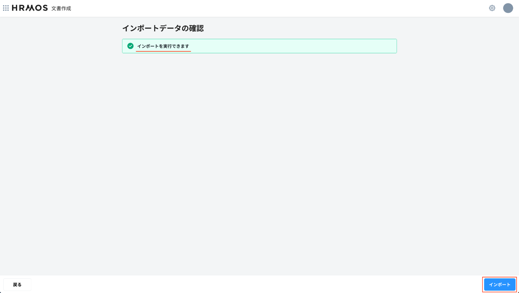 問題ないことを確認の上、「インポート」ボタンをクリックします