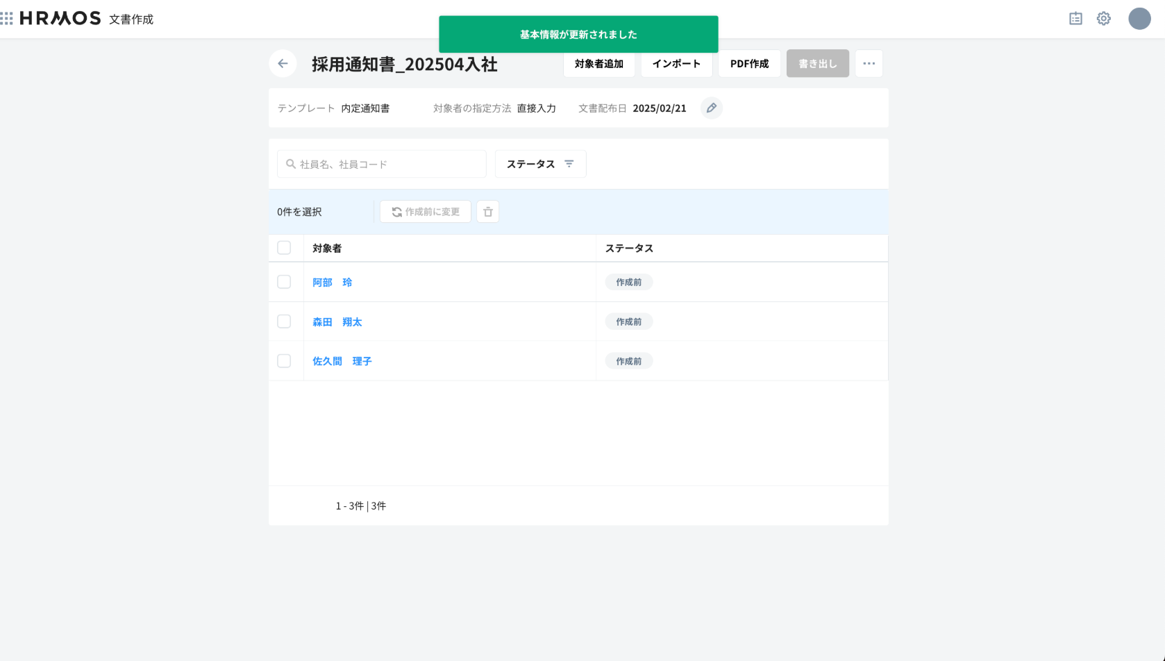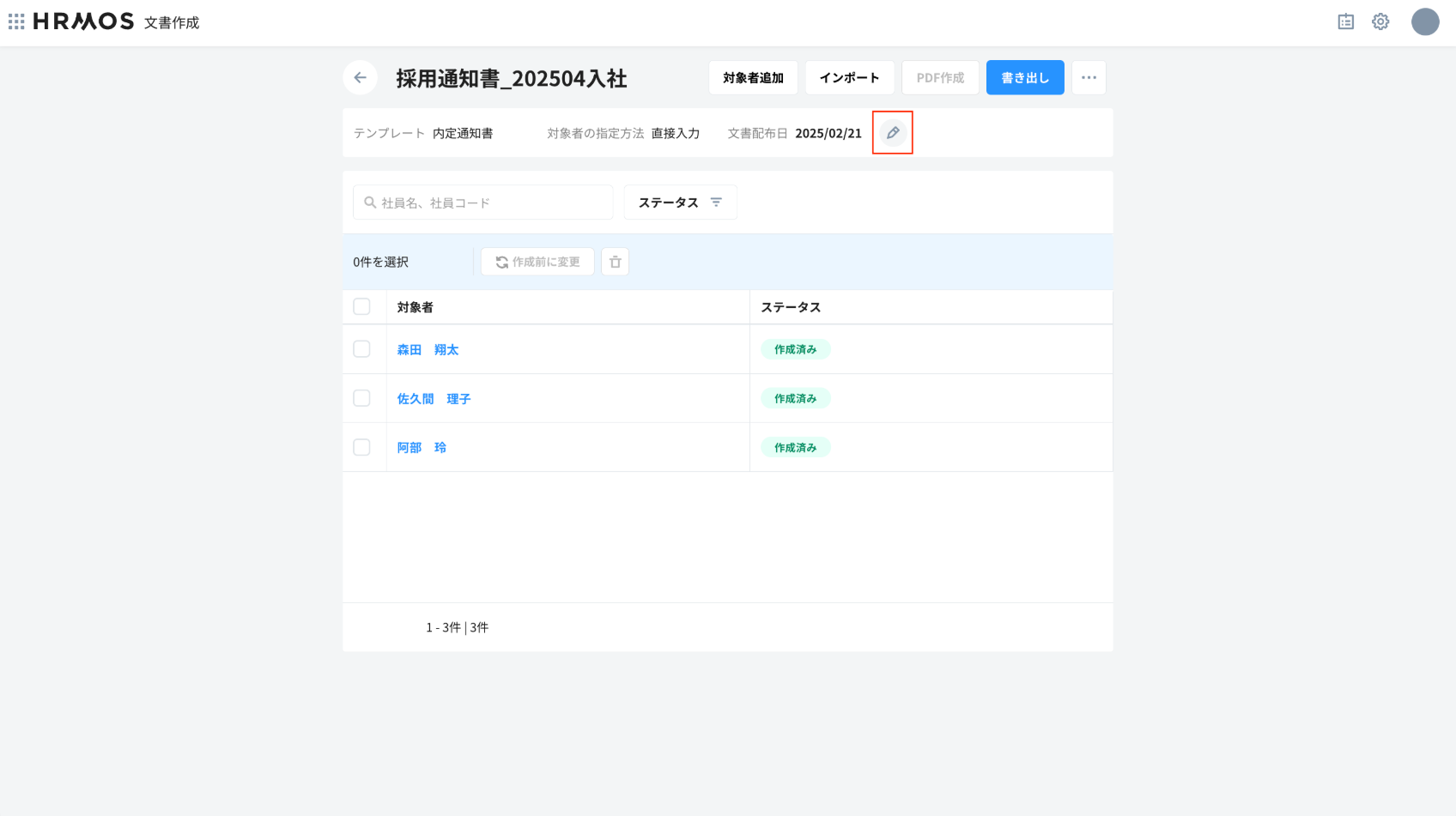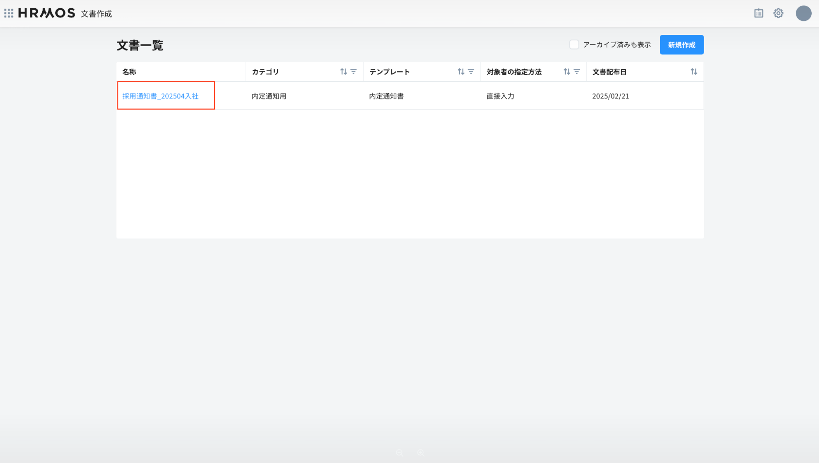 HRMOS文書作成にアクセスし、閲覧範囲を変更したい文書をクリックします