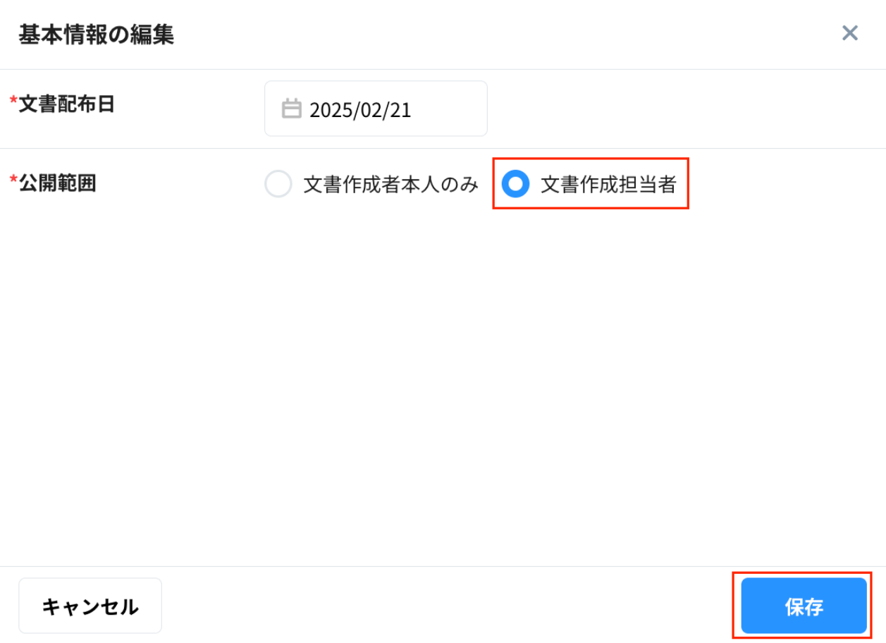 設定したい公開範囲を選択し、保存ボタンをクリックします