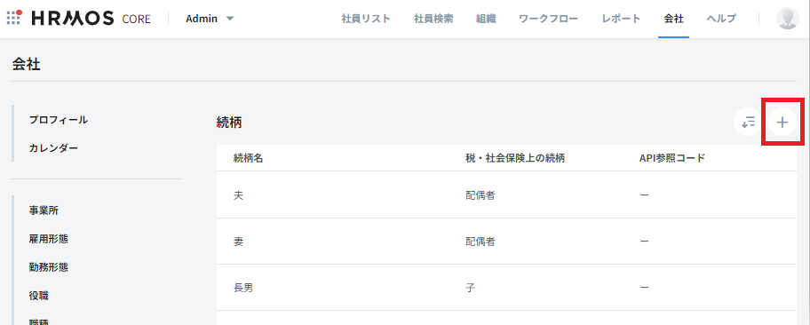 - HRMOS COREで登録・表示する名称を続柄名を設定し、税(所得税)ならびに社会保険で使用される続柄(読み替え)を選択して登録します。