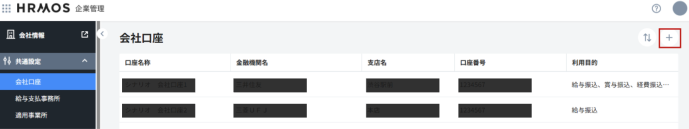 「HRMOS給与」において、法人の振込元として使用する口座の情報、およびFB(ファームバンキング)データの作成に必要な情報を登録します。複数の口座を登録することも可能です。