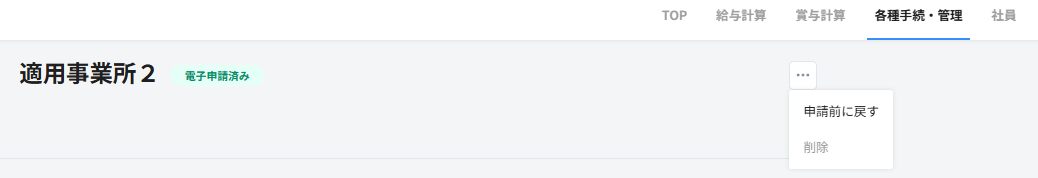 A.HRMOS給与からの取下げはできません。なお、申請データを申請前に戻して利用することは下記のメニューから可能ですが、申請前に戻すと最初に電子申請した電子申請済みの内容は残らないため、一度申請した内容はお控えの上、申請前に戻してください