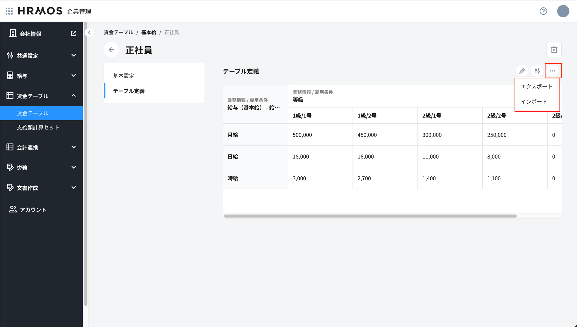 賃金テーブル設定のエクスポート・インポート機能