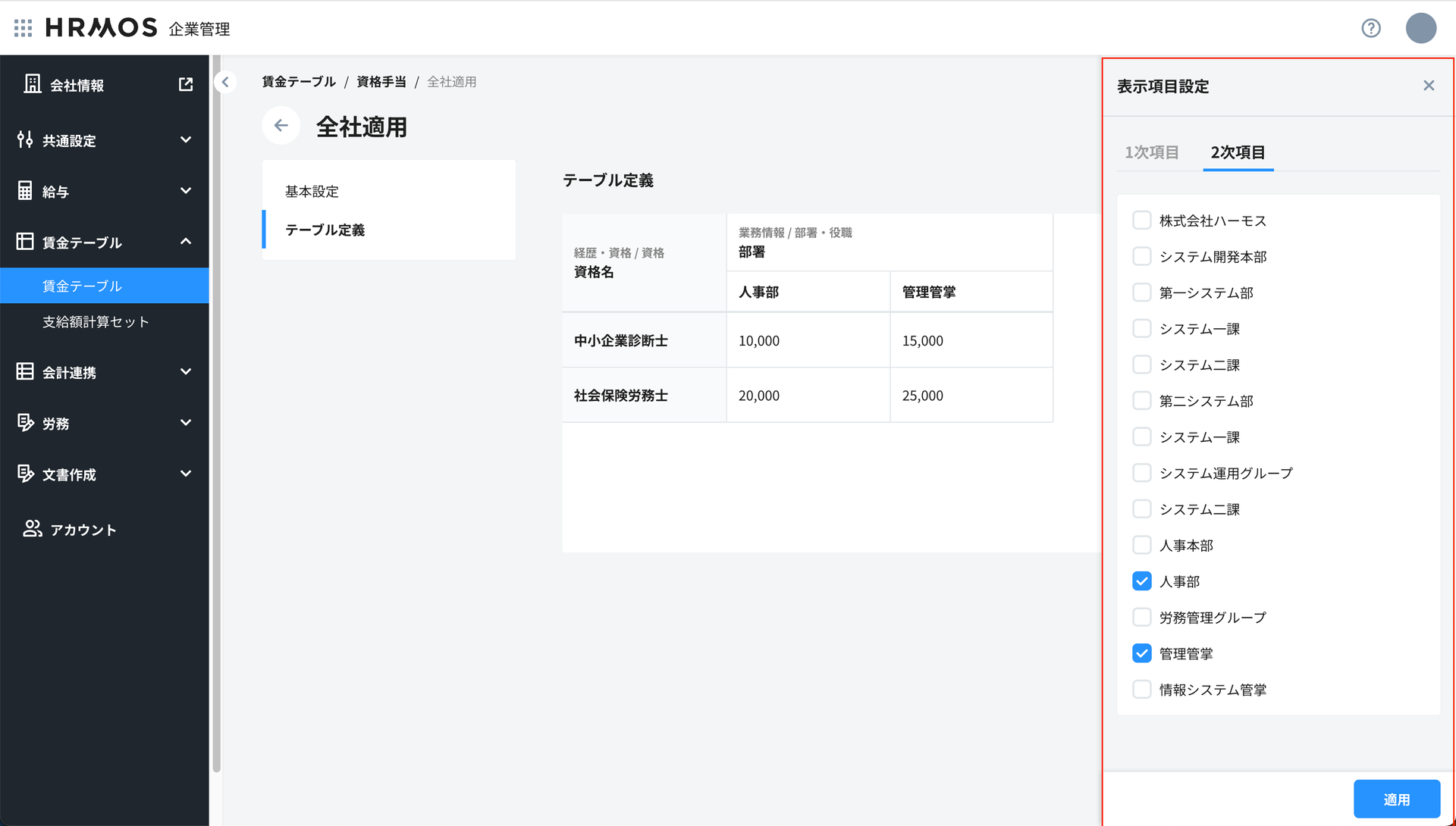 賃金テーブルの表示設定のカスタマイズ