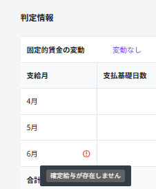 - 確定済みの給与データが存在しない月については、画面上の判定情報で「確定給与が存在しません」と表示されますので、不足情報を確認しながらご入力ください。