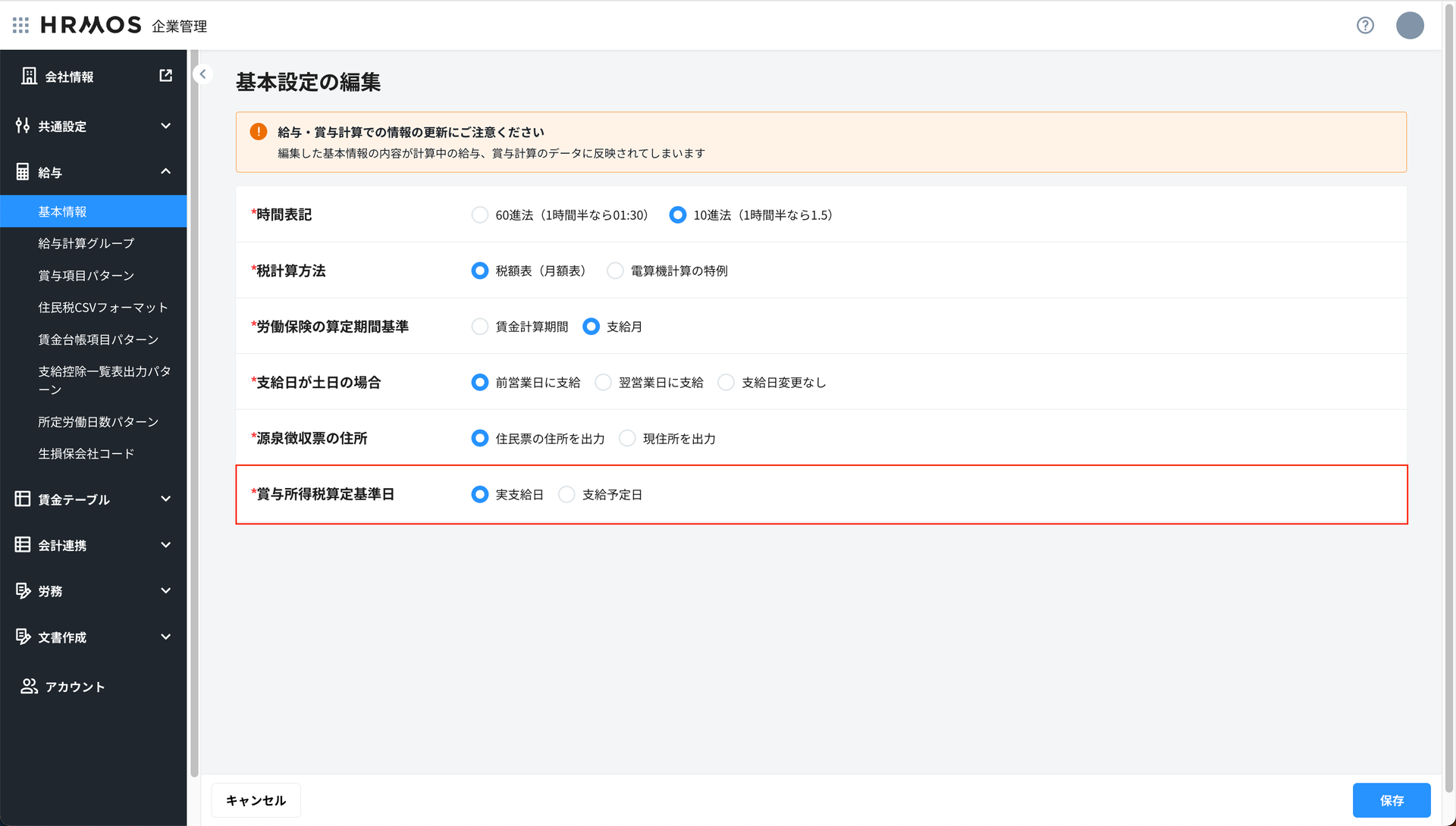 賞与所得税計算時の前月給与の参照基準日が選択可能に