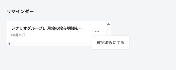 - 不要なリマインダーは・・・を押下し、「確認済みにする」を選択いただくと削除できます