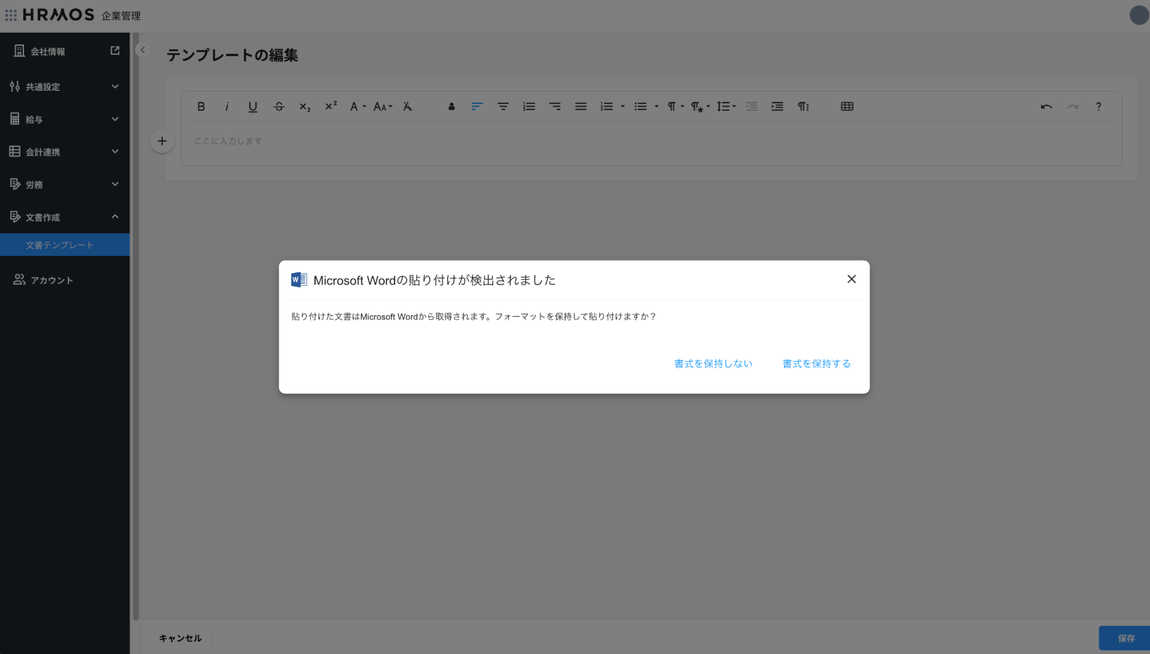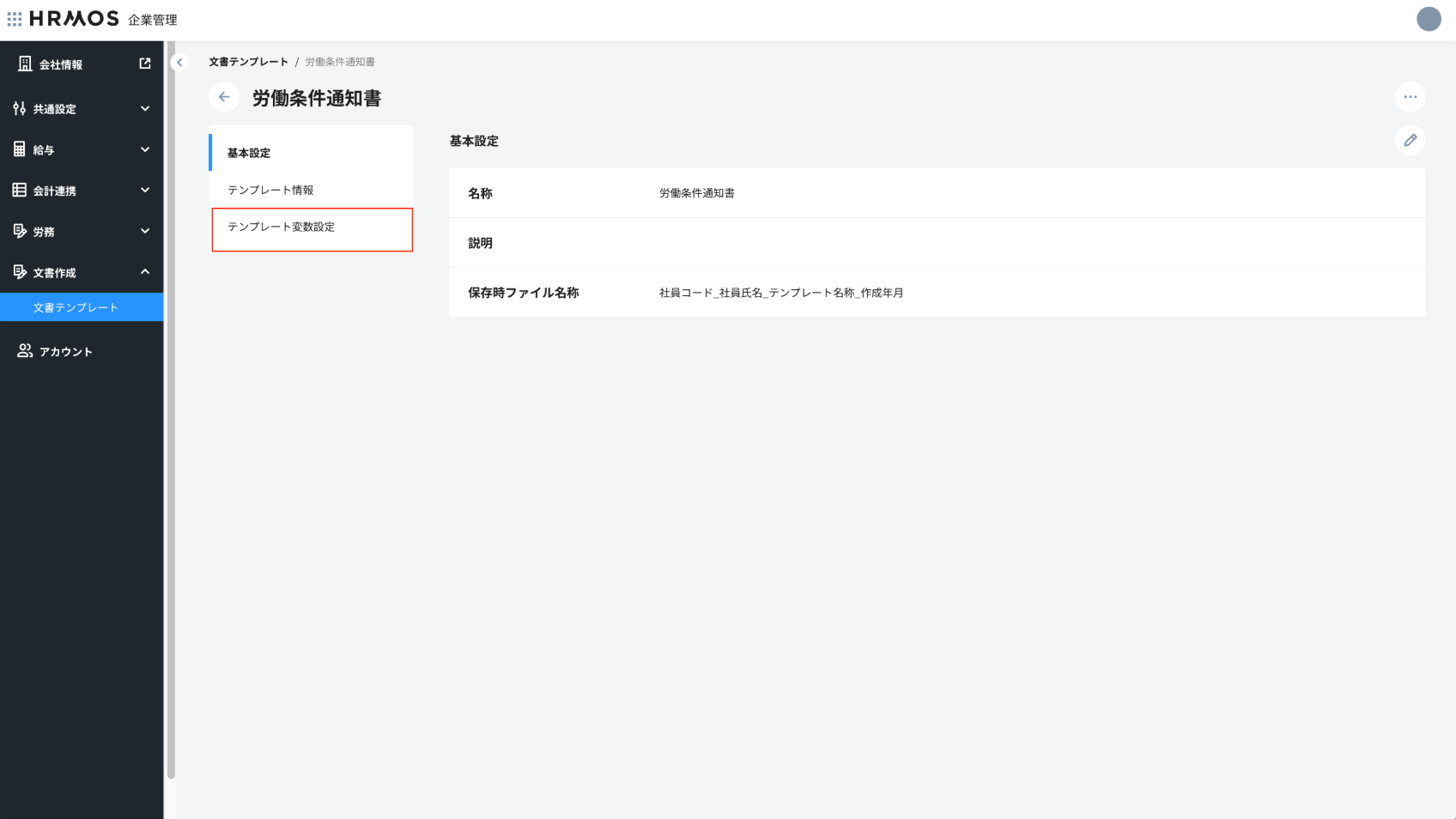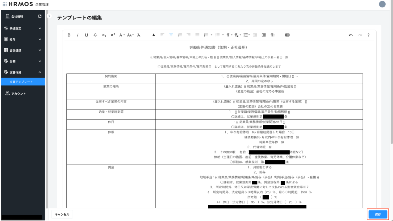 ステップ3.HRMOS企業管理での文書テンプレートの作成