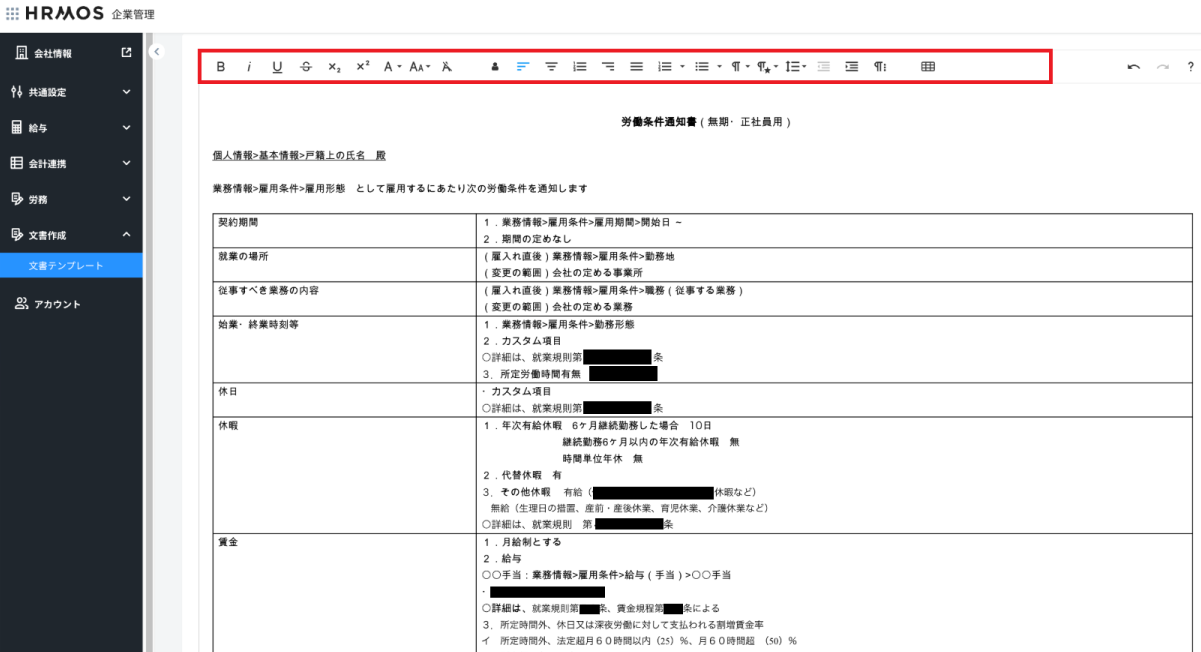 - HRMOS企業管理を使用して文書テンプレートを準備することができる。