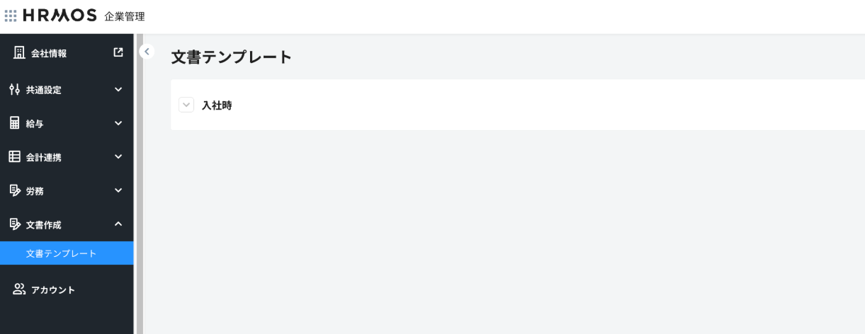 - HRMOS企業管理>文書作成>文書テンプレートを選択します。