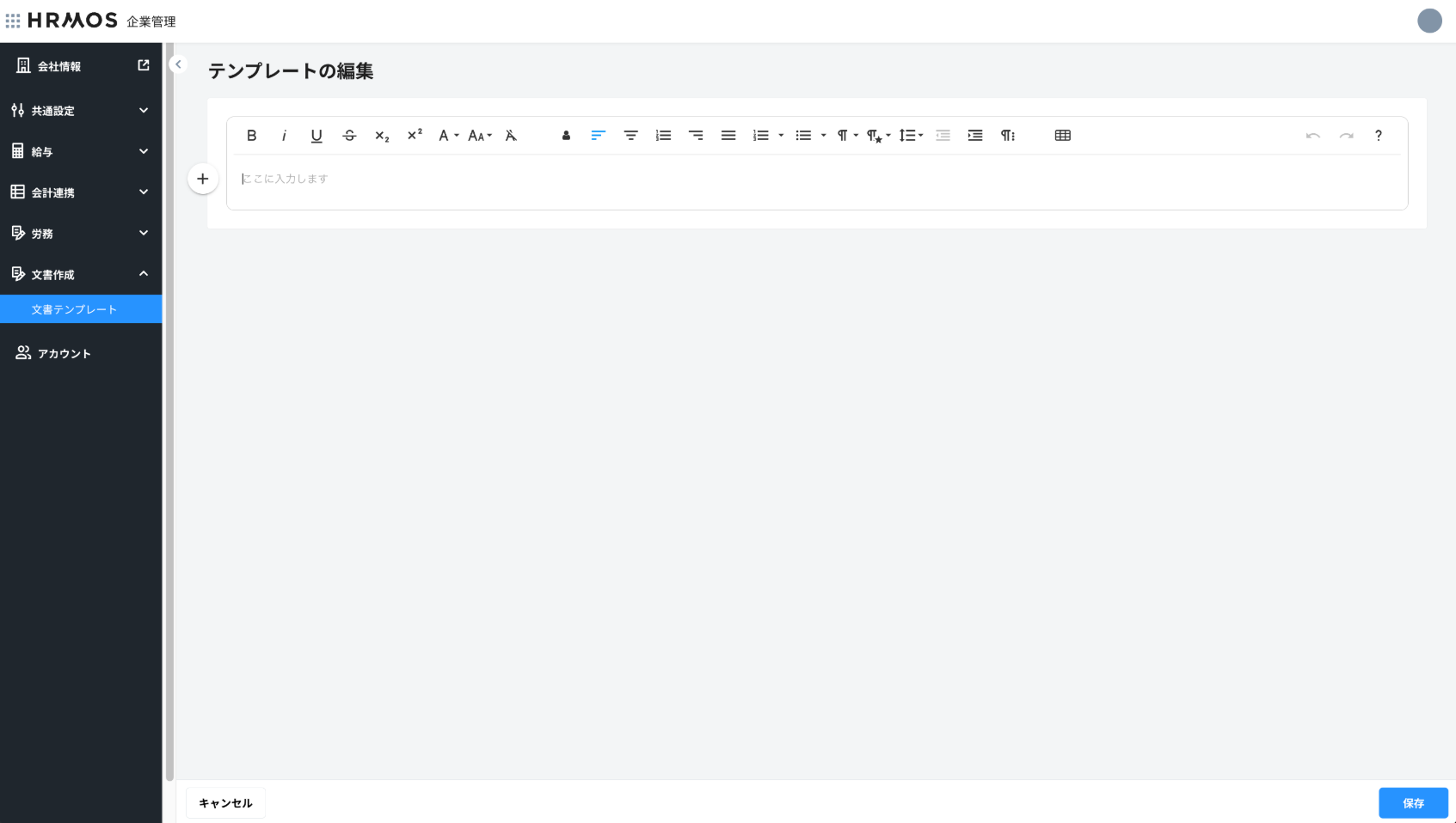 HRMOS企業管理>文書作成>文書テンプレートで文書作成のための文書テンプレートを作成します。