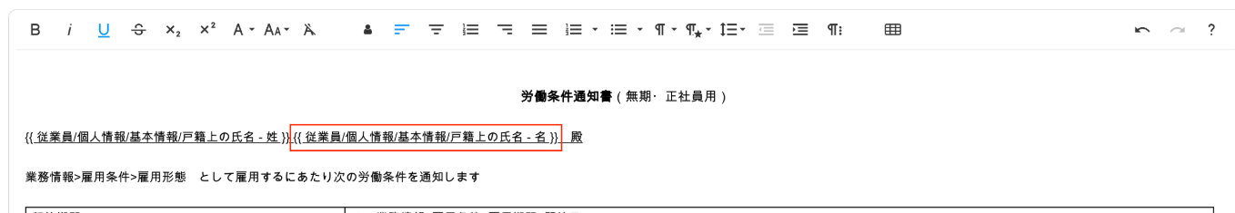 - 従業員(HRMOS CORE)の変数を埋め込む場合: