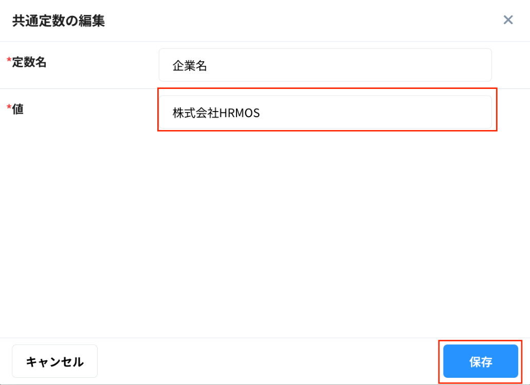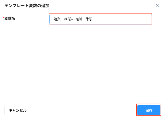 3.テンプレート変数に値を入力の上、保存ボタンをクリックします。