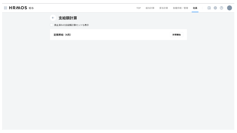 HRMOS企業管理で設定した賃金テーブル、支給額計算セットからHRMOS給与で各社員への支給額を計算します。