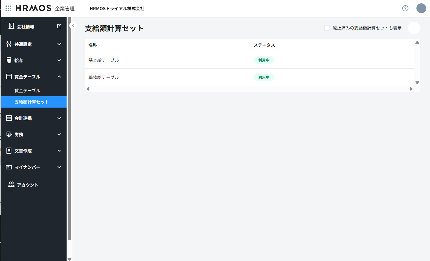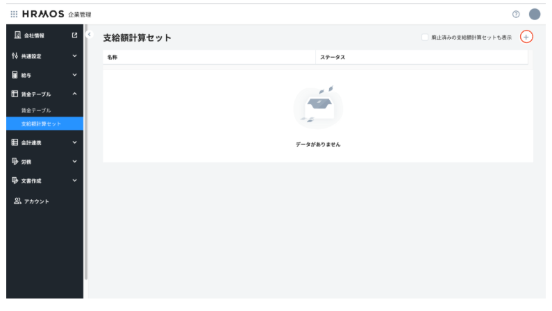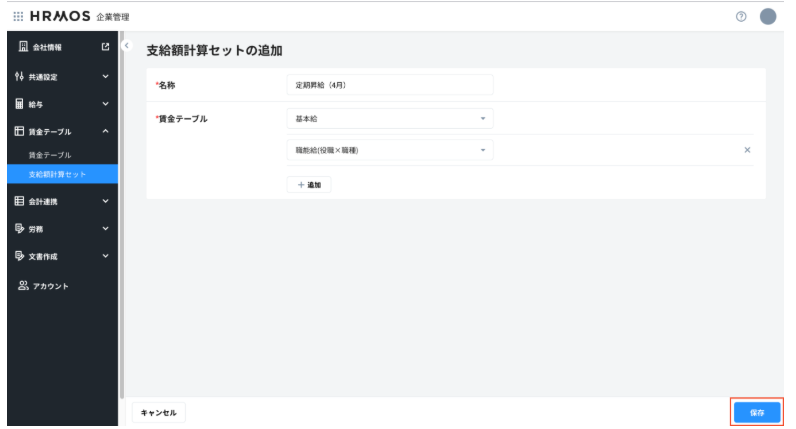賃金テーブルのいずれを用いて支給額計算を行うか設定するための支給額計算セットを「HRMOS企業管理」で登録します。