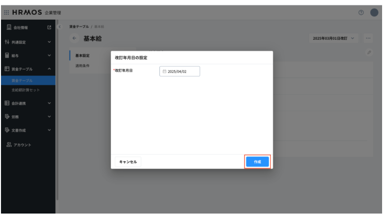 - 補足:「HRMOS CORE」>業務情報>雇用条件>給与(手当)に賃金テーブルの値を反映するためです。HRMOS COREで初期値として登録されている基本給の賃金テーブルの設定では本設定は不要です。
