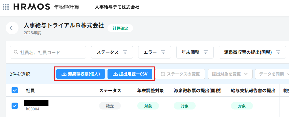 - 国税分だけ申告するための提出用統一CSVデータを作成したい場合は、末尾の補足・ヒントを参照ください。なお、地方税分だけを申告したい場合も、源泉徴収票の提出(国税)=対象外とすることで同様に対応いただけます。