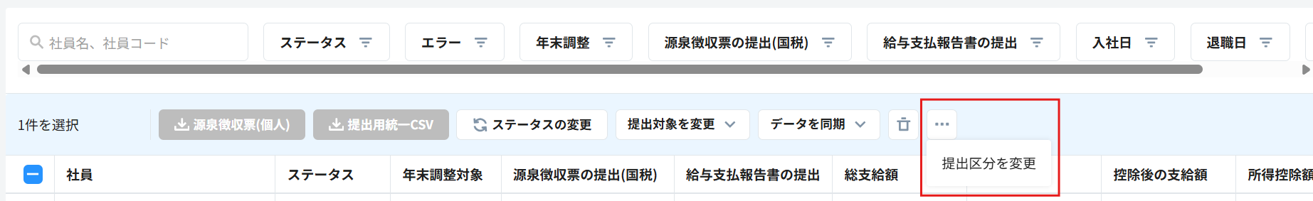 - 提出区分を変更する対象者を選択します。