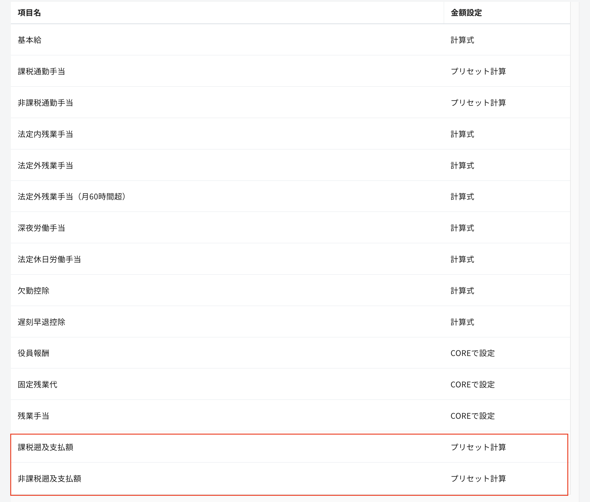 主に、過去に遡って通勤手当の課税・非課税の取扱いが変わった場合等の処理のために行う設定です(法令その他の課税・非課税の振替を含む)。HRMOS CORE>個人情報>通勤手当情報で設定した通勤手当が遡及支払の対象となる場合にその項目設定を行います。
