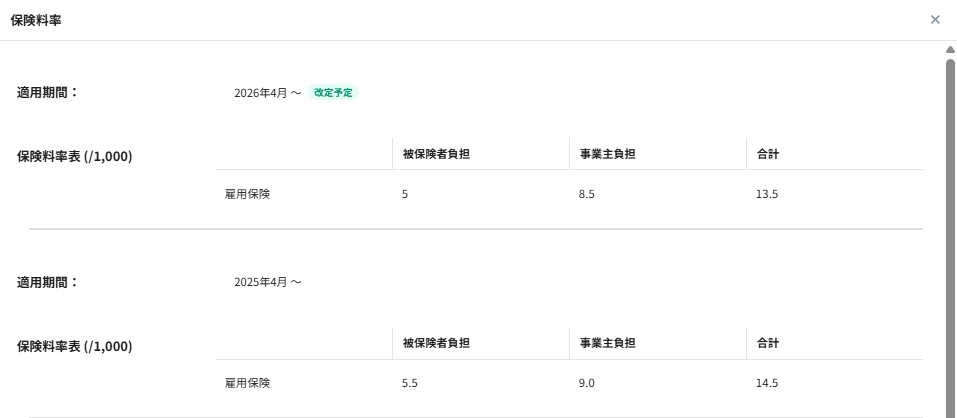 ・こちら(2026年4月からの保険料率改定)でもご案内させていただいたとおり、雇用保険料率の改正のリリースを行いましたのでご案内いたします。